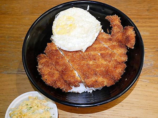 米飯和豬排上頭都有淋醬,所以吃起來不會乾乾的!