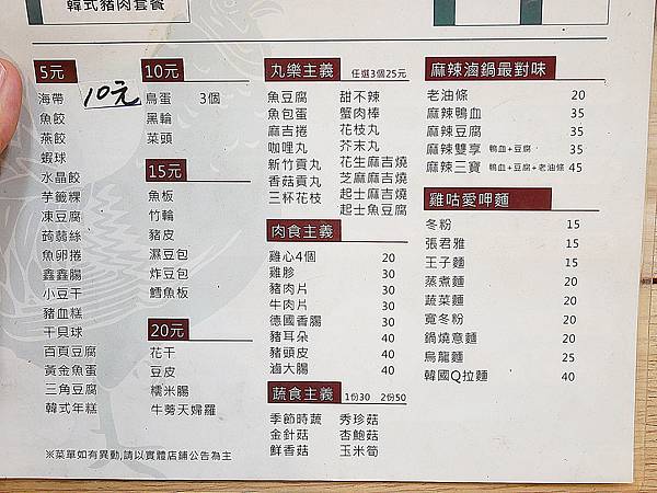 除了滷味食材之外,有一些店家特製的麻辣燙是由廚房出餐,所以放了牌子在櫃檯旁邊