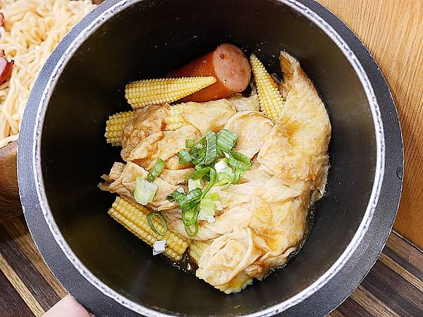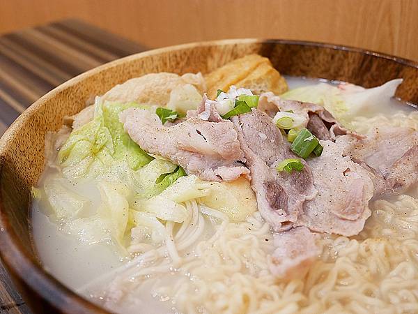 裡面的配料給不少,除了豬肉片之外還有不少火鍋料跟高麗菜,份量還滿豐富