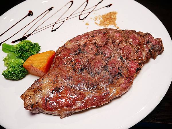 這塊肋眼不小也滿有厚度,肉質吃起來有嚼勁但不會太硬