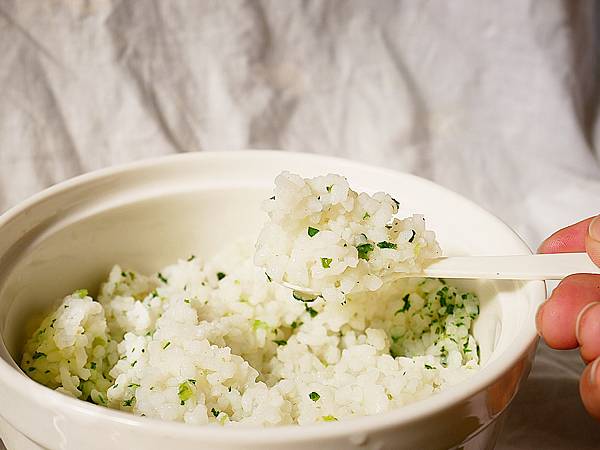 青菜飯是搭配白蘿蔔葉,白白綠綠的看起來滿簡單,不過入口帶點淡淡野菜香滿清爽