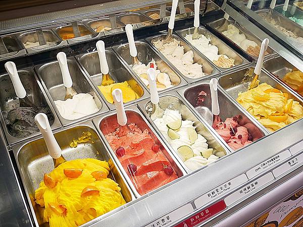 冰品的口味相當豐富,一字排開超繽紛,而且會依季節更換,每次來都有不同風味可以嘗試