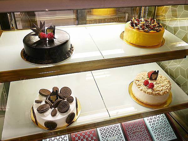 這些是冰淇淋蛋糕,架上的是擺飾,真正的蛋糕在裡面