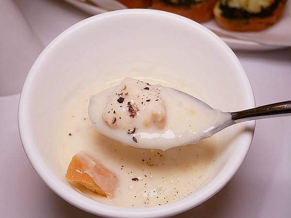 但濃湯非常濃郁但不濃稠,每口都能吃到細緻雞絲,搭配玉米的甜香很有雞蓉粥的錯覺,這道湯品真的很出色,我自己非常喜歡