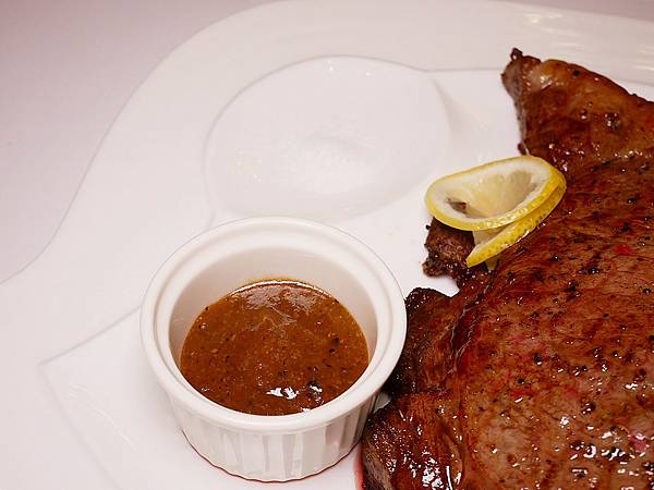 黑胡椒醬吃起來不會太重口味,口感不濃稠,整體表現還不錯,就算是跟牛排搭著享用也不會蓋掉牛排的風味,是滿提味的一款醬汁,不過店家的牛排單吃就很美味,完全不需要額外沾醬