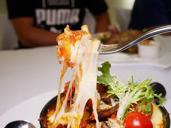 千層麵的份量不算大,茄汁的味道還滿自然,是番茄糊而非番茄醬,比較真材實料! 上頭一層焗烤很療癒又牽絲,底下的料還不少,搭配上麵體相當有層次