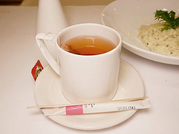 紅茶是可以回沖的,店家會提供糖包讓顧可自行添加,喝起來是常見的沖泡茶,建議茶色出來之後要把茶包先撈起來以免太苦澀