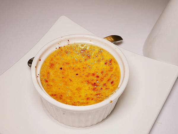 布蕾上頭的焦糖相當薄脆不厚重,所以吃起來也相對不甜膩,焦糖底下的布蕾相當濕潤,比較不是常見的固體狀,有點像是卡士達的口感,但整體口感並不差,奶香濃郁不膩口,表現還不錯