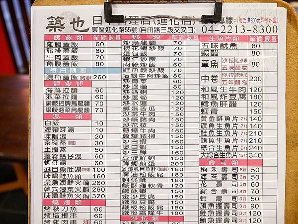 大里起家的"築也日本料理" 在台中有不少分店,肯定很多人都有吃過