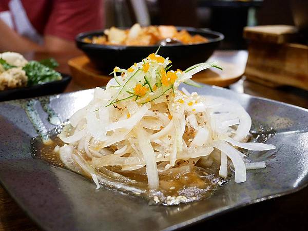 洋蔥超大一盤,上頭點綴一點小黃瓜和蝦卵配色更豐富