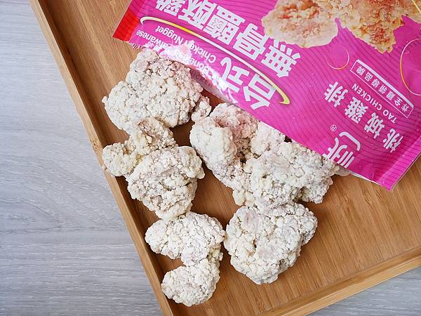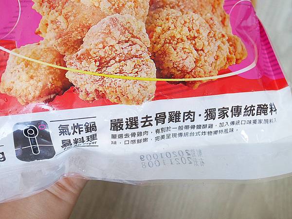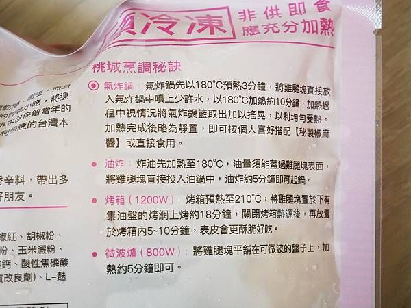 包裝的後面除了成份之外,也有針對氣炸鍋、烤箱或用油炸的料理方式做介紹