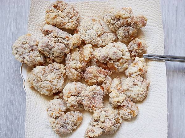 台式的鹽酥雞一樣都沒有太厚的裹粉,顏色比較偏白,但香氣一點也不遜色