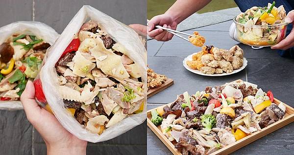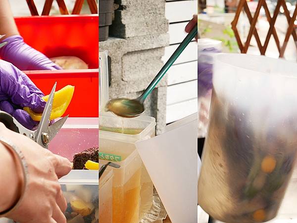 挑選好自己要的配菜後,闆娘會把食材剪塊,並依序加入調味料再搖勻,原諒我淋醬和搖晃都拍糊,實在不好意思請店家暫停等我,怕打擾人家做生意