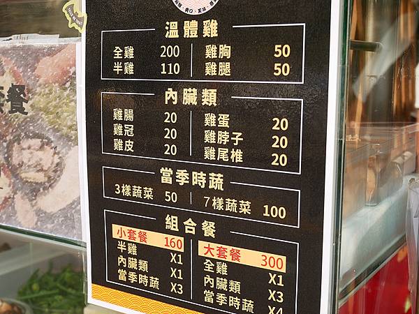 大套餐 $300 (全雞 + 內臟X3 + 蔬菜X4)