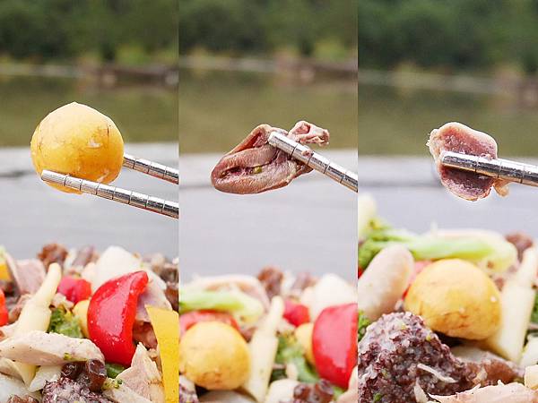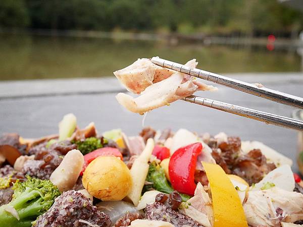 今年南投的花火音樂嘉年華大家有發囉到嗎?,靜香完全沒發囉到超殘念,竟然挑沒有放煙火的日子跑去日月潭 (暈~ 不過能悠閒在日月潭野餐應該也只有平日才能實現,這樣想好過一點,上禮拜和男友帶著鹹水雞、炸雞和堅果派在日月潭旁邊野餐,如果沒有蚊子一切很美好,全台灣都有分店的 "不吃不可鹹水雞" 是我和男友的新寵,像夏天熱到沒胃口直接來一包很可以,多種新鮮蔬菜搭配現剪的雞肉、內臟,不僅客製挑選,而且有菜有肉超均衡,像男友愛吃辣,可以請老闆辣椒多放些,即使是小辣我也無法多吃,辣度還不低,這次分享日月潭分店,有別間分店吃不到的木耳寶寶,聽說是店內熱銷品項
