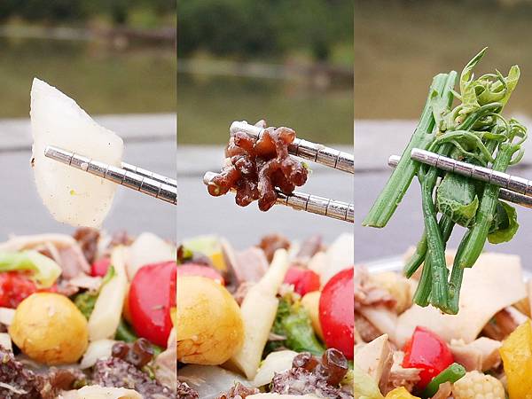 白玉蘿蔔煮得不夠軟透,稍微保留一點脆度,但我比較喜歡入口即化的蘿蔔口感,蘿蔔相當多汁又不會苦苦的味道不差,如果再軟一些我更愛。木耳寶寶是南投特有的,闆娘戲稱這是木耳寶寶,一般吃到的口感比較脆、扎實,但這款特別Q脆且很細緻,不愧是店內熱銷的品項,龍鬚菜口感細緻沒有粗纖維,喜歡涼拌龍鬚菜的人肯定要來一份,搭配肉食享用很清爽