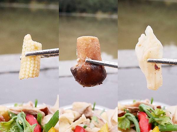 玉米筍相當清甜,每一個縫都吸附滿滿湯汁超夠味,口感挺濕潤很加分。香菇超大一朵,口感非常厚實,軟嫩中不失咬勁,這樣吃還滿有爽感。高麗菜滿清脆,梗不會太粗,超吸湯的特性讓高麗菜成為不管是火鍋或鹹水雞都必點