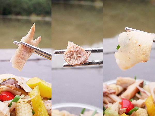 雞冠的口感超脆,小時候最愛的鹹水雞就是這一味,厚實又爽脆,口感真的一級棒!雞腸我頭一次吃還滿新奇,剛開始我以為是跟鴨腸一樣的口感,沒想到有點像粉腸超特別。雞皮我個人滿挑,像是炸的就很愛,但煮的就還好,不過闆娘說他們的雞皮很好吃,特別推薦給我,沒想到吃了真的滿喜歡,皮上面沒有帶油膜的,入口很脆而且完全不難咬,喜歡吃雞皮的朋友一定要來一份