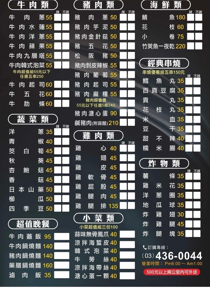 營業時間 : 平日18:00~01:00、假日18:00~01:30