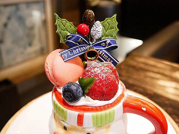 上頭有超飽滿又鮮紅欲滴的草莓,還有藍莓、馬卡龍跟可愛的聖誕裝飾,非常應景!