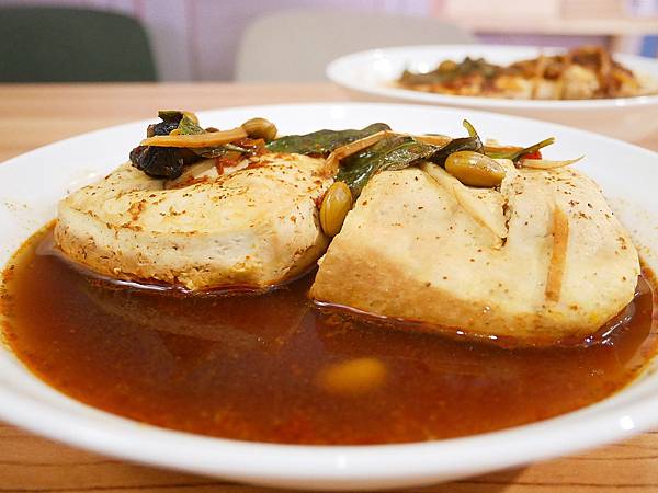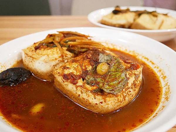 前陣子城隍廟附近新開一家主打「清蒸臭豆腐」和多款「素食米麵食」的小店鋪「臭二爺」