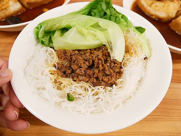 臭二爺的米粉淋上素肉燥,鹹香不油膩,沒有碗底殘留一堆油的情況