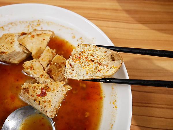豆腐孔洞大非常吸湯,切塊後每一口都很有味道