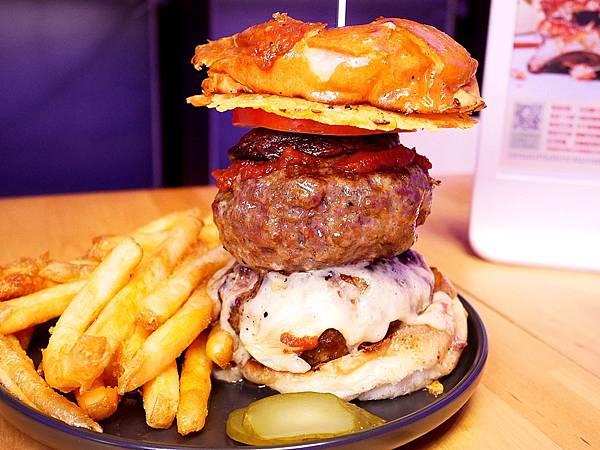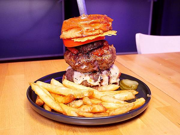 傑斯丹尼的漢堡人氣不低,麵包很鬆軟不會太乾,入口帶點烤到焦香的味道很加分,底下還有乾煎的鹹香乳酪絲、番茄片、香菇和兩大塊厚厚的手打牛肉漢堡排,不管是視覺感還是實際份量都很滿足。漢堡排非常有厚度,入口是濃郁煙燻香氣,調味對我來說太鹹,比較適合重口味的朋友享用,而口感的部分相當有嚼勁,外紮實內嫩還略帶筋,整體吃完飽足感十足,喜歡牛肉又重口味的朋友比較適合享用!