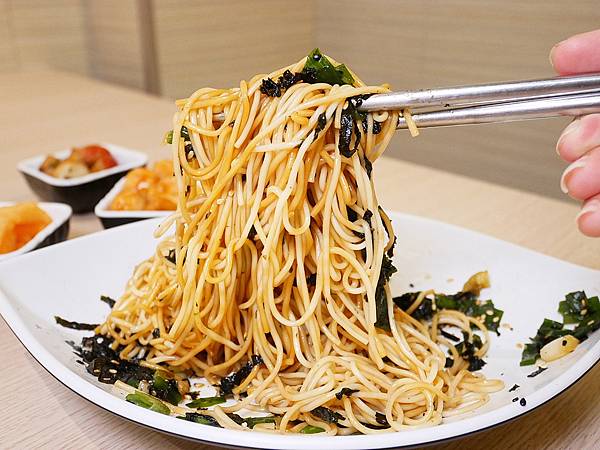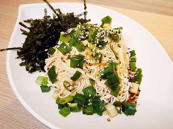 這個麵是吃冷的,有點像涼麵,旁邊還會搭配不少韓國海苔絲,上頭也撲滿青蔥,全部拌勻後一起入口味道還不賴,醬汁鹹香夠味而且幾乎每一口都有沾到,麵條口感Q彈不會太爛很好吃!店員有特別提醒說,如果點有加肉的幾個口味還會再拌入其他醬汁,喜歡重口味的朋友可以試試,像靜香一樣享受清爽風味的比較推薦這款。