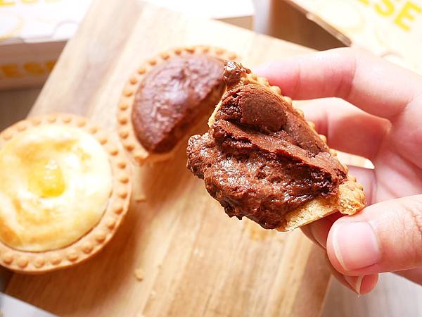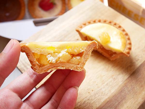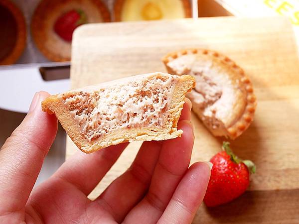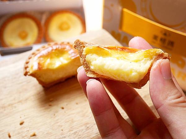 冷藏保存的乳酪塔塔皮沒那麼酥,而中間起司餡的部分咬下比較紮實,入口能品嘗到濃郁奶香很順口好吃。