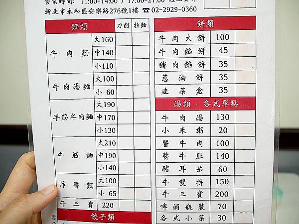 北京餡餅粥在四號公園附近開了一家分店,但因為GOOGLE上沒有資訊,完全是要走去樂華夜市的時候意外發現的。店家的外表很樸素,但跟我吃過很多北方麵食一樣,都是靠餐點吸引客人回流。店內販售的品項很豐富,除了經典的牛肉麵之外,還有各式餡餅、捲餅,倒是沒有小籠湯包讓我覺得滿可惜,小籠湯包也是我的愛之一。聽那天隔壁桌常來的爺爺們在聊天,似乎都是在台灣生活的榮民伯伯們,他們好像很常來這邊聚會順便解鄉愁,連他們都肯定的味道絕對不差!