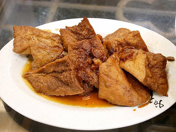 油豆腐還不小盤,淋上肉燥非常鹹香下飯,咬下是有滷汁的,單吃稍微偏鹹,配飯比較剛好。