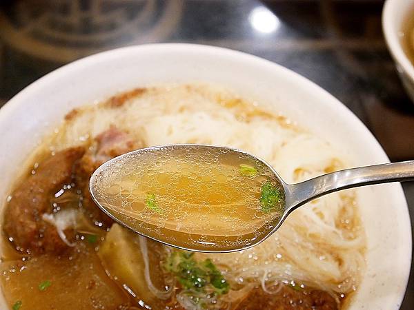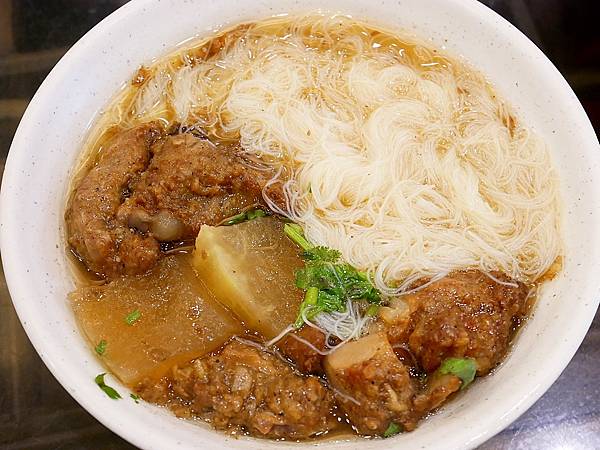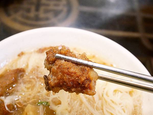 排骨酥米粉的湯頭鹹香不會太厚重,雖然不可能相當清爽但不算油膩挺耐喝,不只有排骨酥的香氣,還有香菜的味道超加分。排骨酥入口即化就連軟骨也很好咬,不是肥膩膩的排骨酥真的還不錯。米粉超吸湯,每一口味道都很夠,搭配起來還不錯。