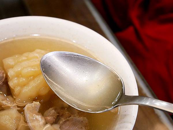 苦瓜排骨湯不算大碗,但裡面的苦瓜給滿大塊而且排骨也不少,湯喝起來還滿有味道,就是苦瓜帶點淡淡苦味比較可惜,還是喜歡沒有苦味的苦瓜排骨湯,不過湯頭相當清澈不油膩很順口。