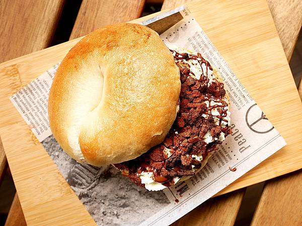 這款貝果是罪惡的來源,熱量肯定報表但依舊高人氣,畢竟乳酪和巧克力的魅力太高很難抵擋。Q彈貝果內加入脆片大大提升層次感,上頭淋了榛果巧克力醬很甜香,乳酪給滿滿但完全不油膩,跟巧克力還滿搭!店家的貝果相當Q彈,是很有嚼勁的口感,對於愛咀嚼的我來說超合胃口,我還滿喜歡這款貝果! 當成餐後甜點或主食都很讚。
