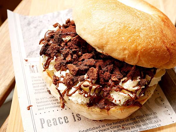 7.335 Brunch隱身在住宅區之中,如果不是專程過來超容易就錯過。菜單上提供的軟法和貝果都是店家自己做的,此外還有去年很夯的生吐司! 雖然主餐的份量不算多,不過附餐都滿精緻。其中我最念念不忘的就是巧克力脆片乳酪貝果,輕食的份量卻有極罪惡的熱量,手工貝果夾了滿滿乳酪、巧克力脆片和榛果巧克力醬,搭配起來味道超級棒,喜歡巧克力的朋友絕對要試試!