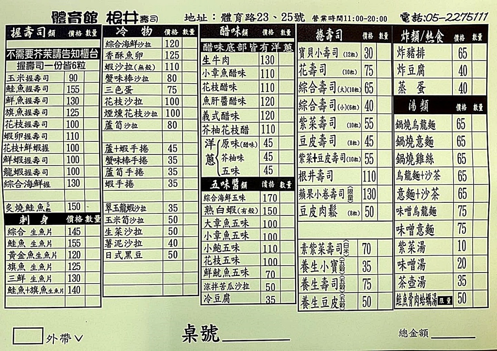 當天跟男友帶一個嘉義在地的朋友去吃,整桌吃完剛好500,三個人平均下來真的很便宜,但餐點的味道中規中矩沒有網路上說的那麼誇張,特別是壽司的飯太硬不大OK