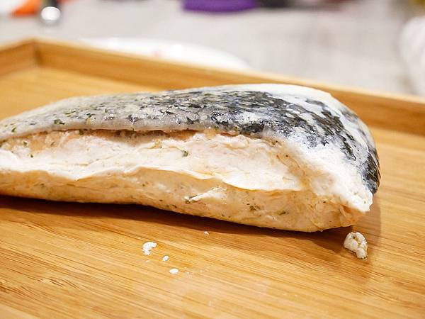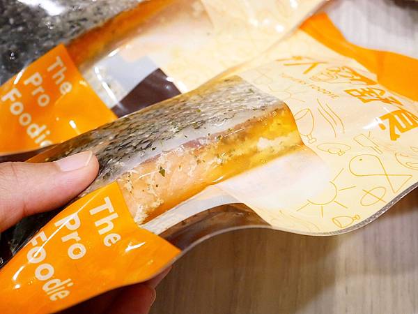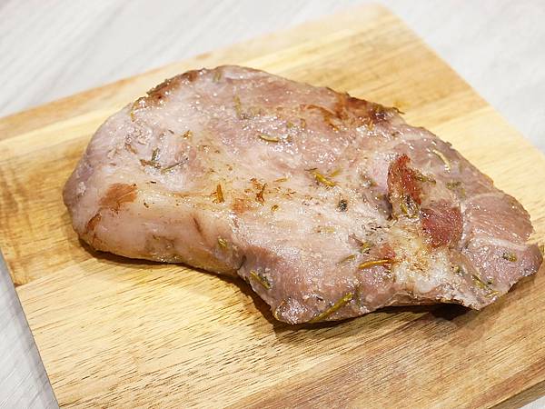 這個size的鮭魚排一般只有在動輒2.3百塊的簡餐或排餐店才看得到,選用智利的鮭魚製成,不只相當厚實而且肉質細緻,透出美麗的橘紅色澤。調味的部分相當天然,迷迭香、巴西里、檸檬等都是經典的香料,既能增添風味、減少腥感又不影響鮭魚本身的甜香。