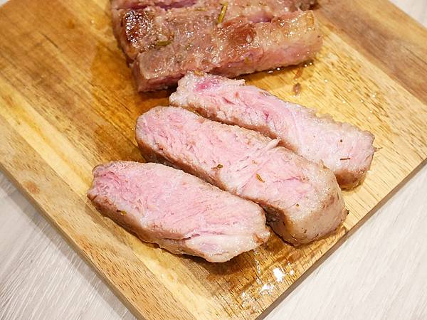 豬排退冰後記得用紙巾把肉上面的水份吸乾,在熱鍋上頭把肉的兩面分別煎3分鐘左右最剛好,建議不要加熱太久以免肉汁流失或變太乾,如果喜歡表面酥一點就多煎幾分鐘,讓表面微上色口感也不錯!