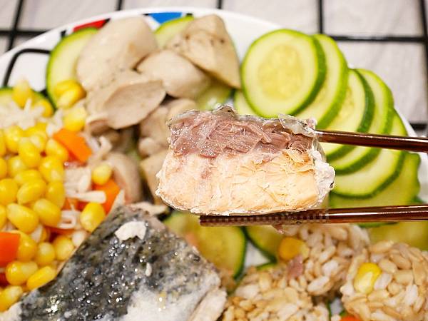 靜香把鮭魚連同杏鮑菇和雞蛋一起加熱,省去油煎的步驟讓鮭魚看起來沒有油亮亮,但是鮭魚本身就含有豐富油脂,大量Omega 3超健康,入口也完全不乾澀,肉質細緻且濕潤夠味,不大會腥而且無刺很方便吃,不用把廚房搞得油膩膩就有魚排可以享用很不錯,特別推薦給生酮飲食和低碳飲食者食用。