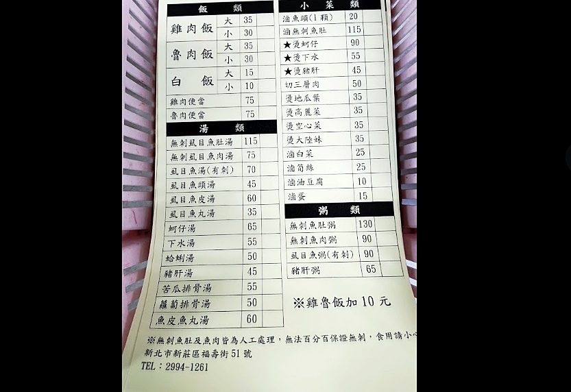 新莊福壽街的小吃你最愛哪一間? 其中「眼鏡張」的人氣超高,不只價格親切而且味道很不賴! 之前剛搬到新莊,立刻google把幾家福壽街的小吃截圖收藏,新莊眼鏡張就是其中之一。店家的餐點價格相當親切,大碗的雞肉飯只要$35,這根本是台中的價格,除了主食CP值高,店家的湯品也必點,料超多而且味道很棒,必點!