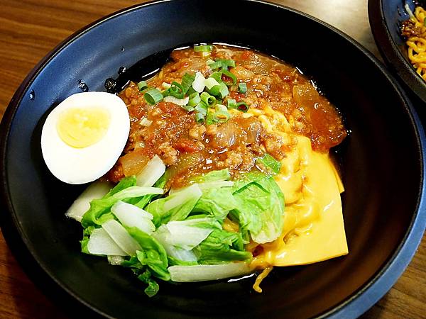 上頭鋪了一片起司、半顆水煮蛋還有一把青菜,雖然份量不多但視覺感還不錯。