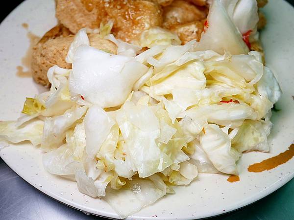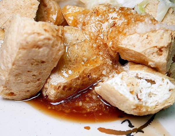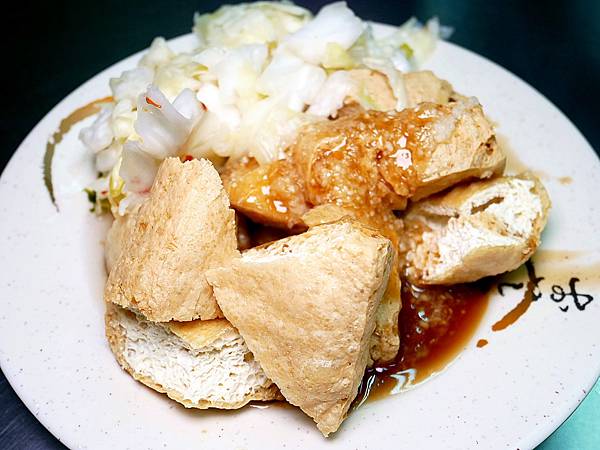 店家的臭豆腐外層相當酥脆,咬下卡滋卡滋,中間的部分有點棉但又不算超細緻,強烈建議一定要沾醬,沒沾醬的部分略嫌不夠濕潤,但是加醬之後的味道還不賴,味道和口感都滿值得嚐嚐。豆腐的泡菜給的很大方,口感爽脆又微酸超開胃,搭配起來非常加分。