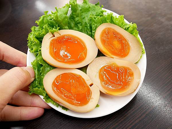 一般吃拉麵會搭配溏心蛋,但跟湯包的組合還是第一次嘗試,溏心蛋口感軟Q但偏鹹,中間的蛋黃比預期的多熟1.2分,如果質地再滑順些就更棒了。