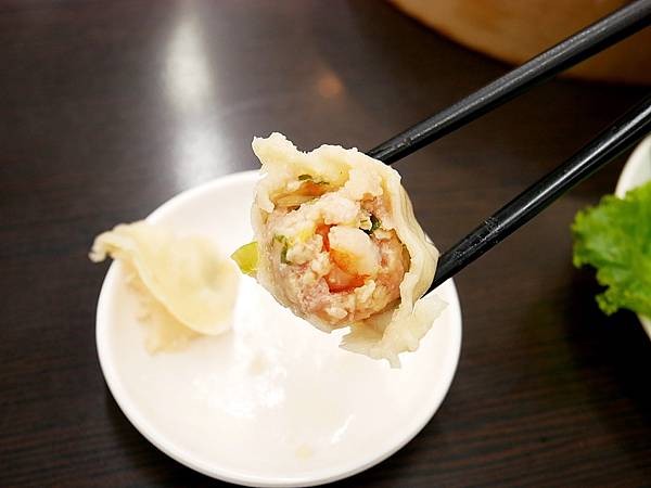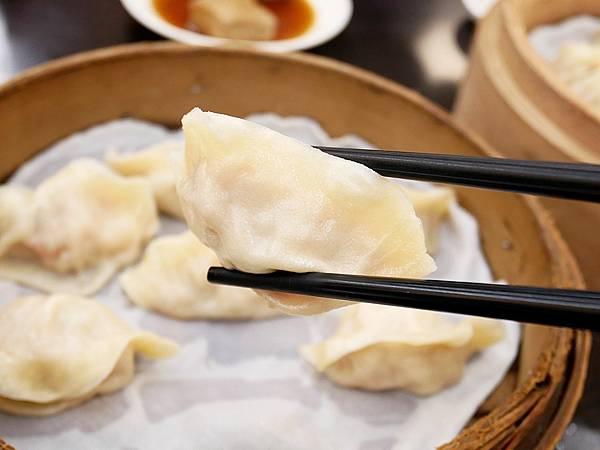 蒸餃的摺痕處比湯包多,所以趁熱吃才不會顯得乾硬,蒸餃還不小顆,裡面的餡也不少,可以吃到大塊的蝦仁很真材實料,雖然蒸餃的味道沒有小籠湯包來得驚艷,但表現也不錯。