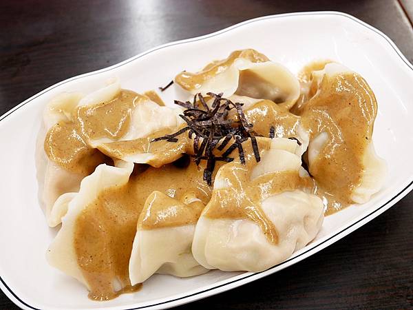 老闆推出麻將跟水餃的組合,絕對是用來吸引像我這種愛嚐鮮的人,上頭的麻醬給不少,所以吃起來比較偏鹹,麻醬濃郁夠味跟水餃其實不違和,但對我來說太重口味,只能說不難吃但不耐吃。