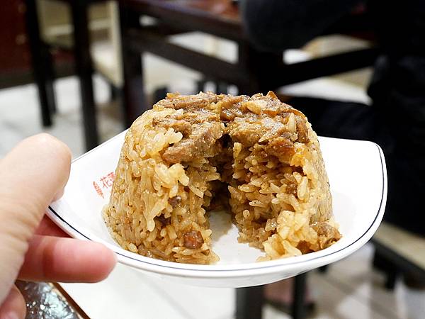 米糕的SIZE比一般筒仔米糕大些,上頭滷肉味道還不錯,微鹹香也夠濕潤,底下的糯米粒粒分明,雖然顯得不夠濕潤,但也因此沒有糊糊爛爛的,米糕也建議搭配些沾醬味道比較夠。
