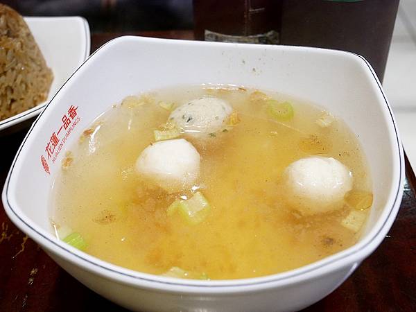 魚丸湯裡面有兩種丸子,湯頭比較清淡,帶點芹菜和紅蔥香,還算順口但沒有太令人驚豔。