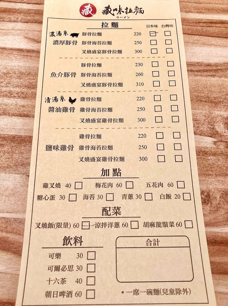 中和景安站旁的巷子哩,有間不顯眼卻總是大排長龍的拉麵店 藏味拉麵 。每每晚餐時段都能看到外面長長人龍,趁著搬離開前來嚐鮮。店內的拉麵共有四種湯頭可以選,還可以選擇要日本味還是台灣味,這家店比較龜毛,怕影響風味所以不提供外帶或打包,但入內用餐可以免費加湯加麵超划算,食量大的朋友擔心吃不飽。除了拉麵,限量叉燒飯也是絕對不能錯過的好味道! 藏味拉麵的空間不大,但座位之間不擁擠,用餐氛圍還不錯。