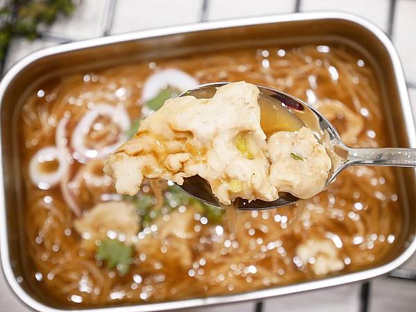 麵線不會太稀,麵量也不會太少,口感稍偏軟但不影響整體風味,裡面加了紅蔥酥跟香菜我喜歡,湯頭調味滿剛好挺耐吃,雖然尾韻不持久但入口沒有吃到味精的不適感這點有加分,不過吃起來有淡淡糯米紙的味道超特別,不會是什麼店家的祕方吧XD